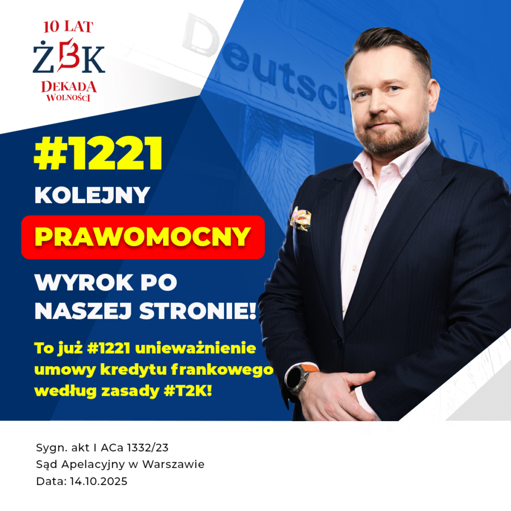 Zastanów się, ile możesz zyskać, pozywając bank z profesjonalnym wsparciem – ten proces po prostu się opłaca. Zamiast latami tkwić w toksycznym zobowiązaniu, warto podjąć jedną decyzję, która przyniesie Ci finansową wolność i satysfakcję z wygranej. W ŻBK nie ukrywamy, że batalia sądowa to poważne przedsięwzięcie, ale zapewniamy maksymalne bezpieczeństwo i komfort w jej trakcie. Nasze doświadczenie pokazuje, że kredytobiorcy praktycznie niczym nie ryzykują, a mogą tylko zyskać – zarówno w wymiarze materialnym, jak i osobistym. Pamiętaj: to bank powinien oddać Ci pieniądze, a nie odwrotnie! Sprawiedliwość nie przychodzi sama – trzeba o nią zawalczyć. I właśnie teraz jest na to najlepszy moment.