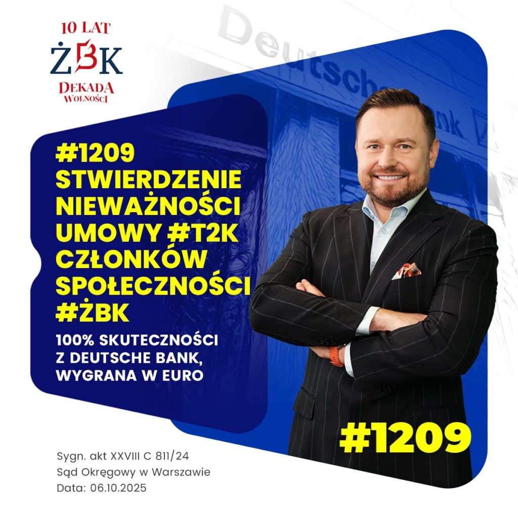 Skuteczne unieważnienie kredytu waloryzowanego do euro wymaga profesjonalnego podejścia i dużego doświadczenia procesowego. Wybór odpowiedniej kancelarii prawnej to decyzja o ogromnym znaczeniu – ma realny wpływ na wynik sprawy. Społeczność Życie Bez Kredytu, tworzona przez wybitnych prawników i ekonomistów finansowych, od lat wspiera frankowiczów i eurowiczów w walce z bankami. Zespół ekspertów ŻBK ma na koncie liczne prawomocne wygrane w sprawach kredytów euro, a w przypadku kredytów frankowych może poszczycić się 100% skutecznością prawomocnych wyroków na korzyść klientów. Każde takie zwycięstwo to dowód, że prawo działa – trzeba tylko umiejętnie z niego skorzystać. Frankowicze przecierali szlaki w sądach, a ich sukcesy są dziś powtarzane przez posiadaczy kredytów w euro. Mając po swojej stronie doświadczoną kancelarię, kredytobiorca z góry niweluje przewagę banku i zwiększa swoje szanse na pełny zwrot.
