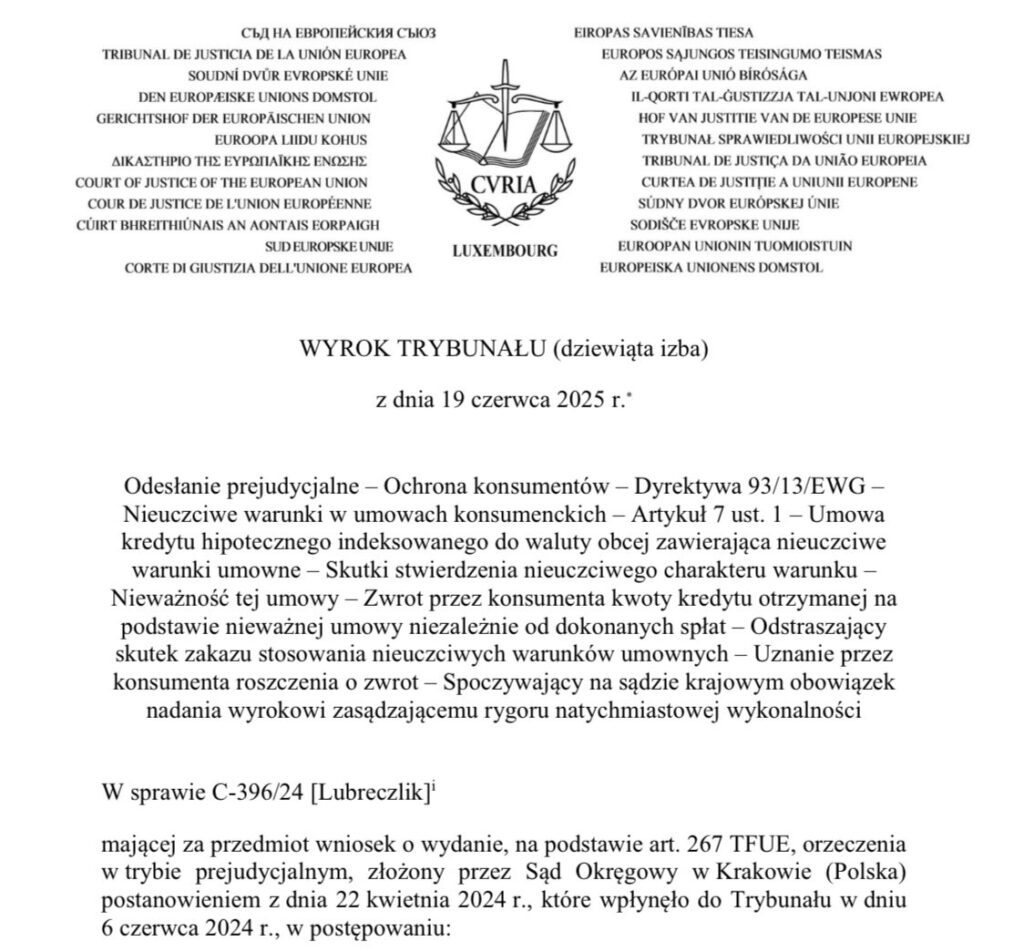 Wyrok C-396/24 to tarcza, którą frankowicze mogą wreszcie unieść z dumą w sali sądowej. Dla tysięcy rodzin to przełomowy moment – pierwszy od lat wyraźny sygnał, że racja nie musi dłużej przegrywać z kapitałem. Od teraz to banki muszą tłumaczyć się ze swoich żądań, a nie konsumenci ze swojej obrony.