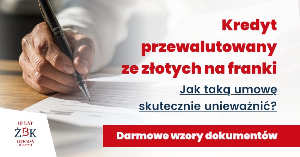 Jaki wniosek można wyciągnąć z tego stanu rzeczy? Oczywiście zabranie się do działania i pozwanie swojego banku. Co uzyskamy w ten sposób? Unieważnienie umowy kredytowej lub odfrankowanie umowy, a więc znaczące korzyści finansowe. Chodzi przy tym zarówno o pieniądze, nie trzeba tego ukrywać (Państwa pieniądze), ale też o sprawy czysto życiowe, które są z pieniędzmi związane, a więc pewien komfort życia.