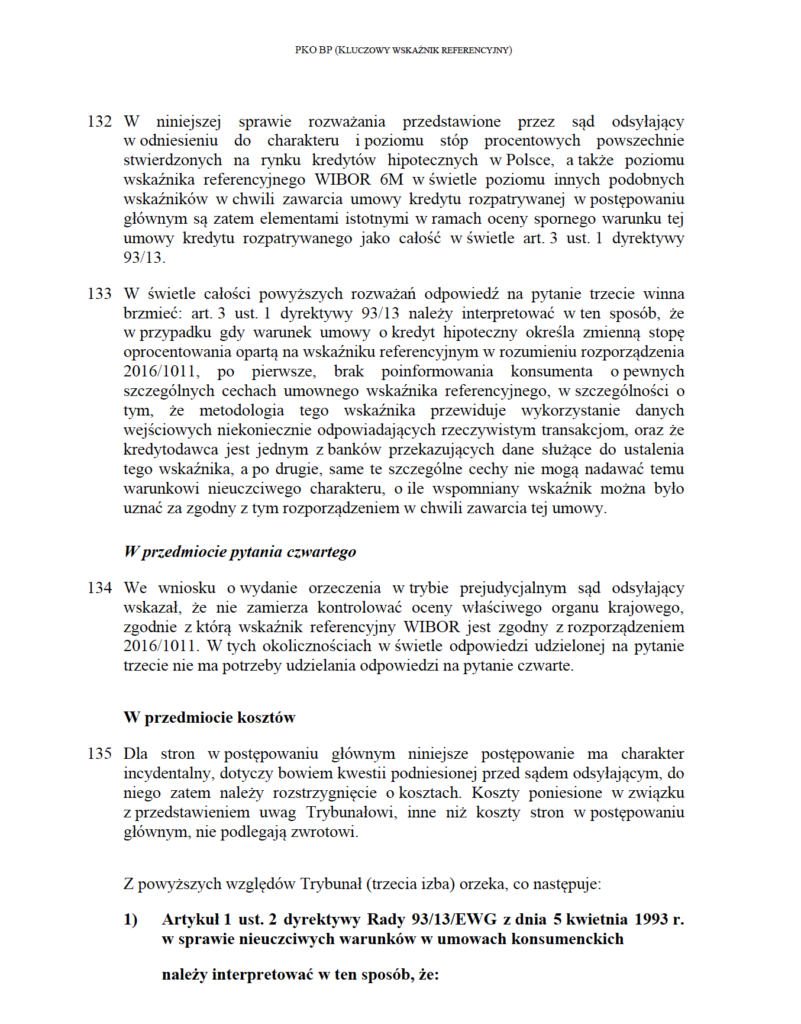 W orzecznictwie europejskim coraz wyraźniej rysuje się standard, według którego nie wystarczy formalne wskazanie, że oprocentowanie jest zmienne. Bank powinien wyjaśnić mechanizm działania wskaźnika oraz jego potencjalne wahania w sposób zrozumiały dla przeciętnego konsumenta. Jeżeli tego zabrakło, WIBOR przestaje być neutralnym parametrem, a zaczyna być przedmiotem oceny pod kątem abuzywności. To właśnie w tym miejscu pojawia się przestrzeń dla argumentacji procesowej.
