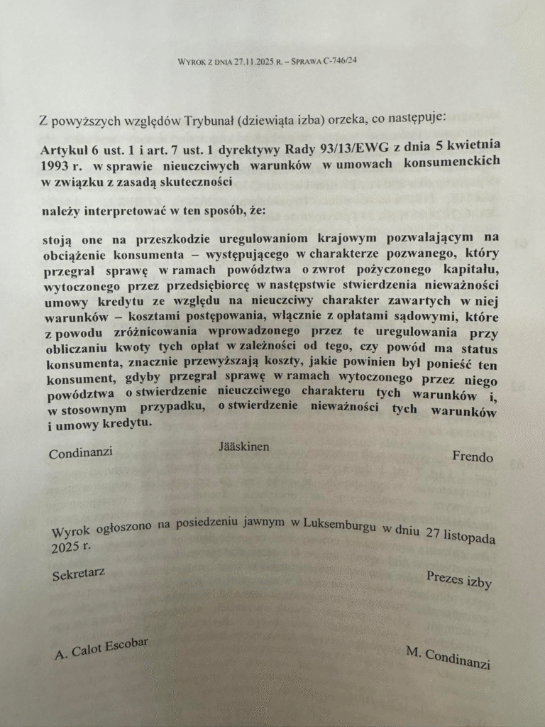 Jak wyrok TSUE C-746/24 zmienia rzeczywistość frankowiczów